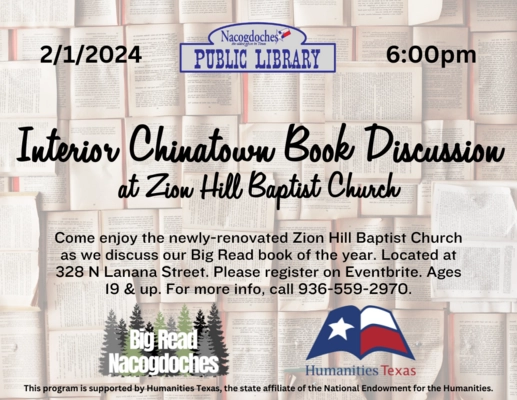 Daily Sentinel Events Interior Chinatown Book Discussion at Zion