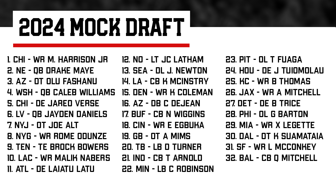 Pro Football Network #PFN365’s new 2024 #NFL Mock Draft that