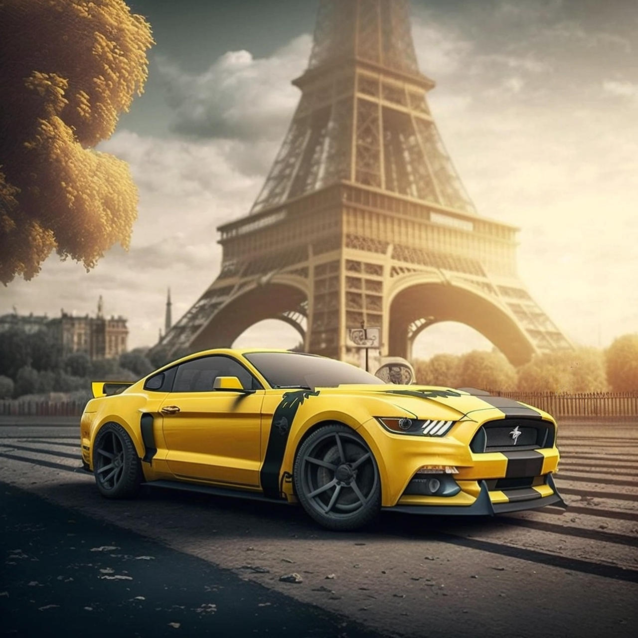Yellow mustang by the Eiffel Tower by gadgetman138 on DeviantArt